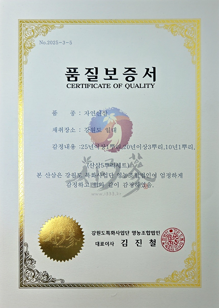 25년이상 1뿌리 + 20년이상 3뿌리 + 10년 1뿌리 (총 5뿌리 세트)