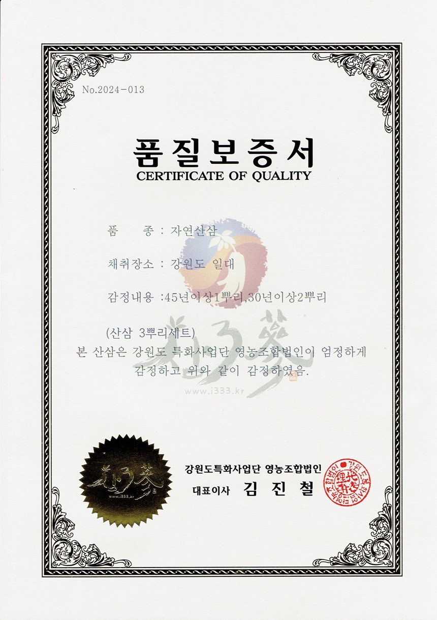 45년이상 자연산 산삼 1뿌리 + 30년이상 2뿌리 (총 3뿌리 세트)
