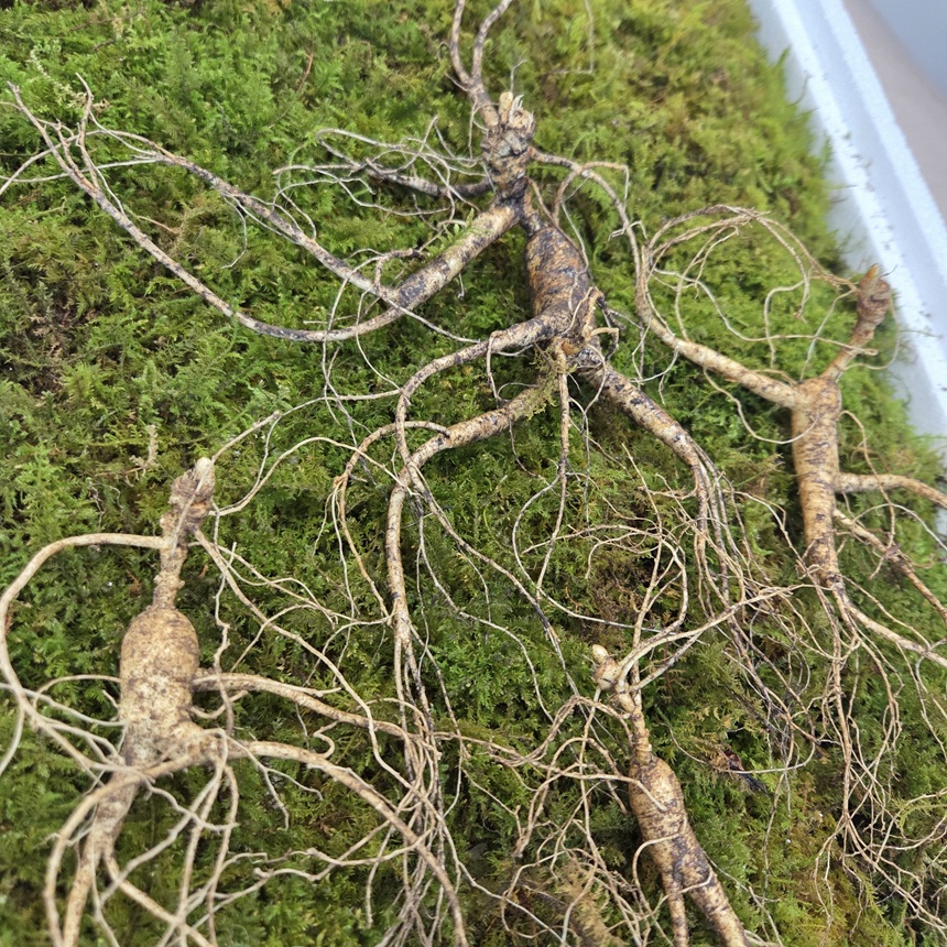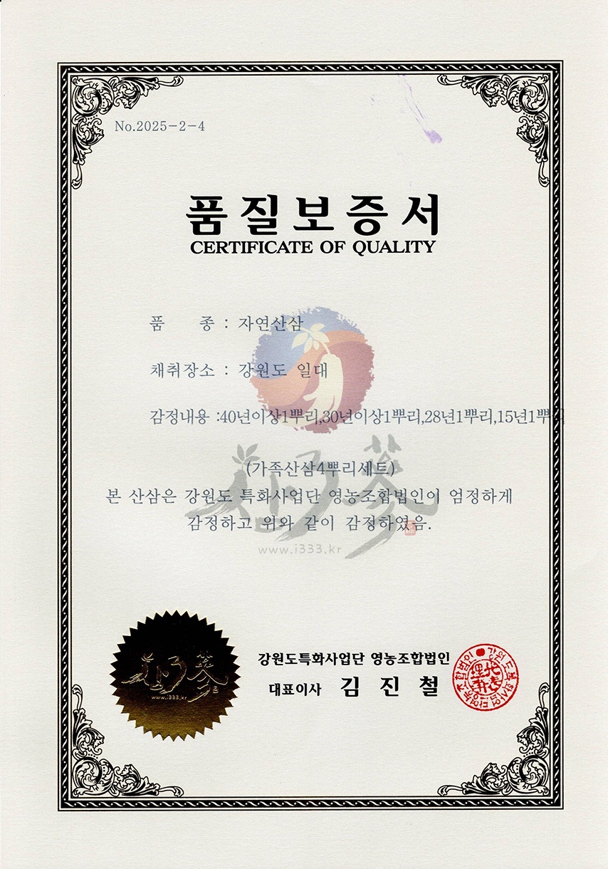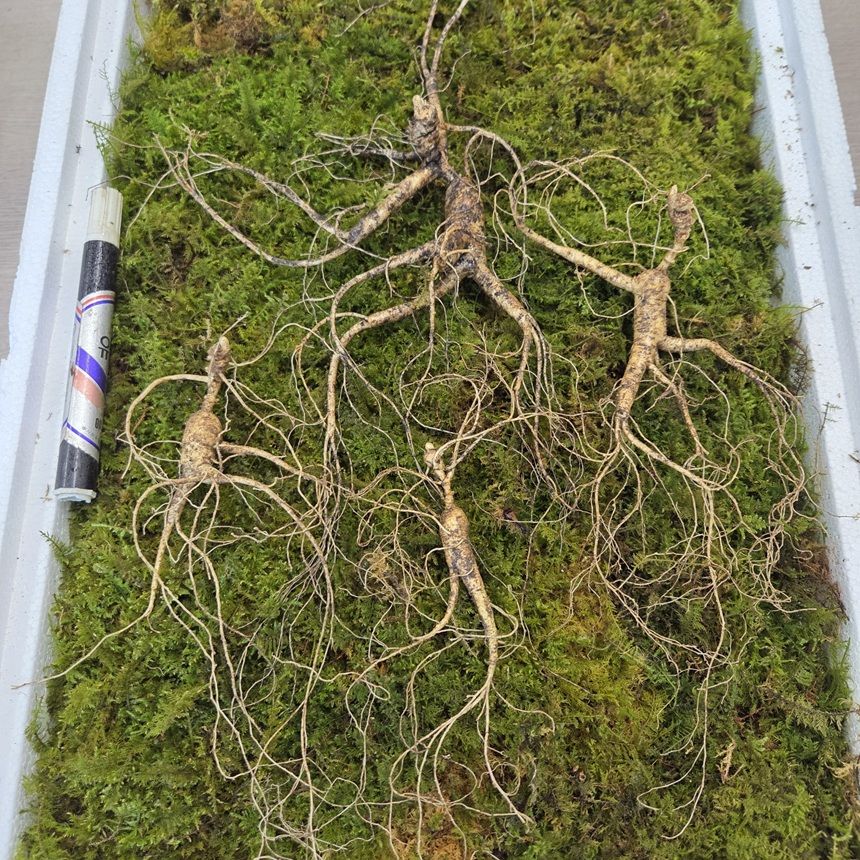 40년이상 1뿌리 + 30년이상 1뿌리 + 28년 1뿌리 + 15년 1뿌리 (총 4뿌리 가족삼 세트)
