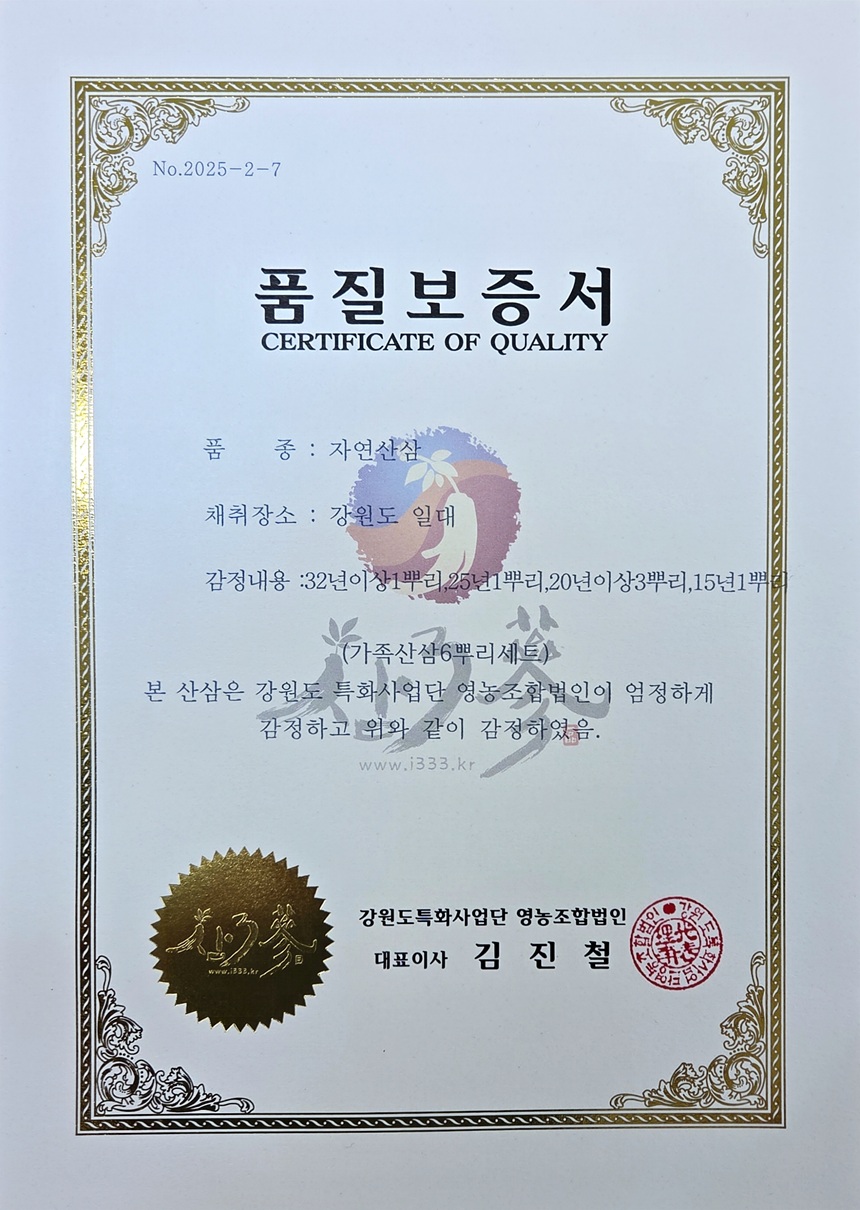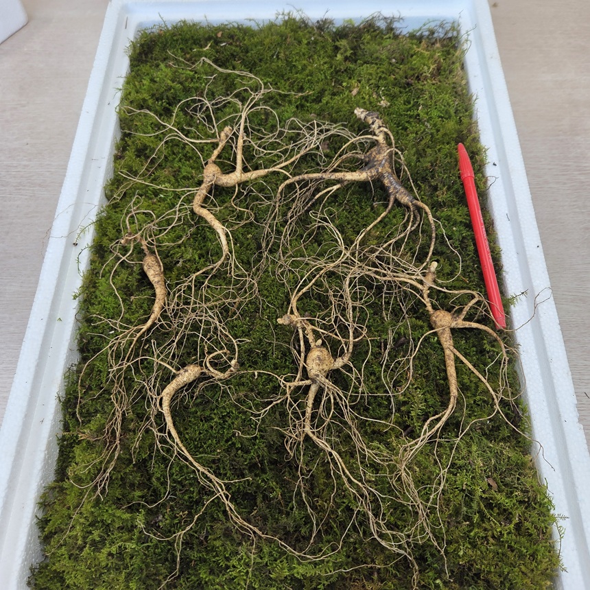 32년이상 1뿌리 + 25년 1뿌리 + 20년이상 3뿌리 + 15년 1뿌리 (총 6뿌리 가족삼 세트)