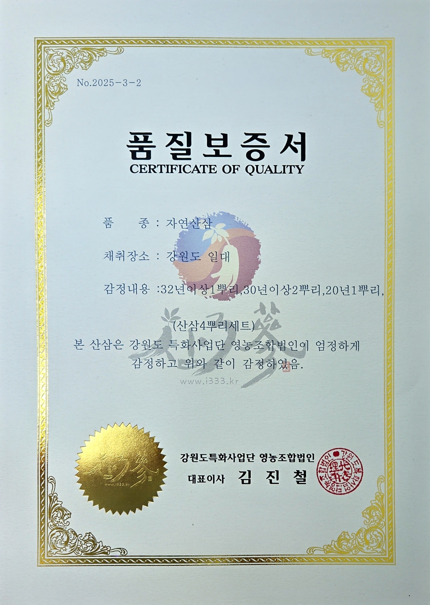 32년이상 1뿌리 + 30년이상 2뿌리 + 20년 1뿌리 (총 4뿌리 세트)