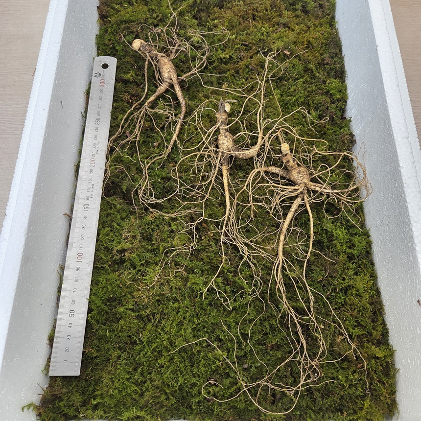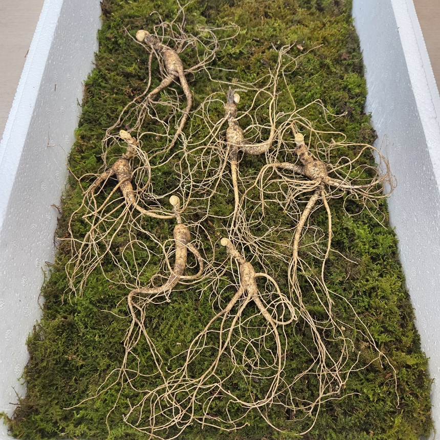 30년이상 1뿌리 + 25년이상 2뿌리 + 20년 2뿌리 + 15년 1뿌리 (총 6뿌리 가족삼 세트)